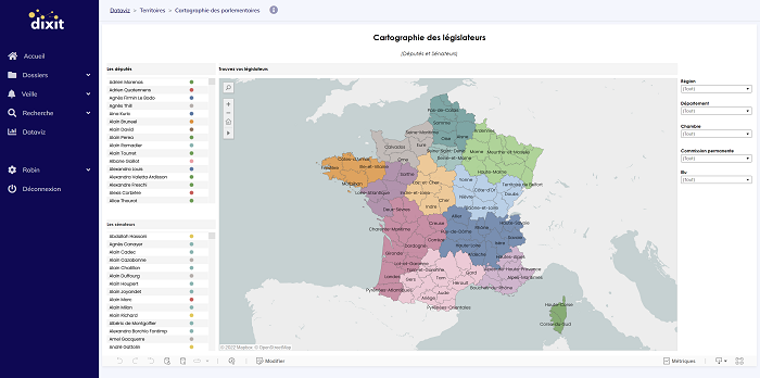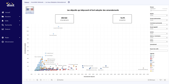 Avec Dixit, tout devient plus simple ! En quelques clics, les utilisateurs peuvent cartographier leur environnement parlementaire.