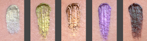 Le fard à paupières Lumière est disponible en 5 teintes : argent, vert mordoré, bronze, lilas, bordeaux holographique.