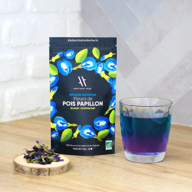 Utilisée depuis des siècles dans la médecine ayurvédique, la fleur de pois papillon contient un pigment naturel qui confère une magnifique teinte bleue à son infusion. Elle a un goût floral subtil et légèrement sucré, qui se marie parfaitement avec le gingembre et le citron. Les fleurs de pois papillon Another Tree peuvent être consommées en infusion chaude, en cocktail ou dans une salade.