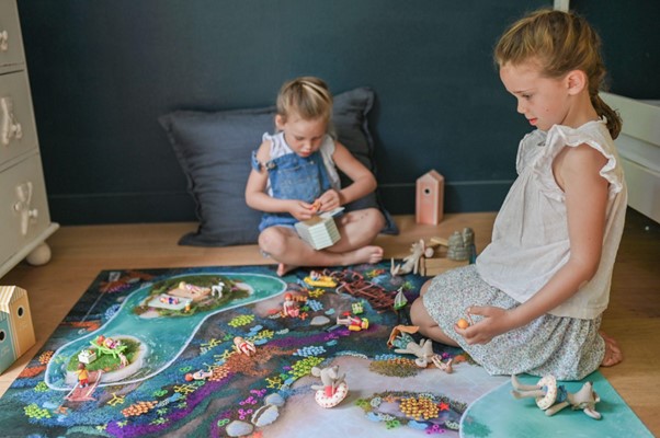 - une vision pédagogique du jeu : le tapis de jeu est au service de l’imagination des enfants, de leur créativité pour faire vivre les plus belles aventures à leurs personnages