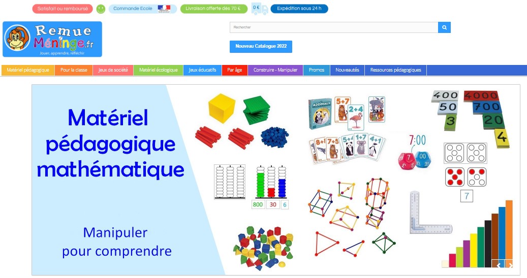 Le site Remue Méninge est devenu une référence pour les enseignants qui souhaitent mettre en place la pédagogie par le jeu et la manipulation. Depuis 2015, il propose un vaste choix de matériel pédagogique de qualité aux enseignants de maternelle et de primaire.
