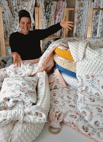 Passionnée de couture, elle a découvert le cocon pour bébé lors d’un voyage dans les pays d’Europe de l’est en février 2019, et a immédiatement été séduite par le concept, si joli et pratique.