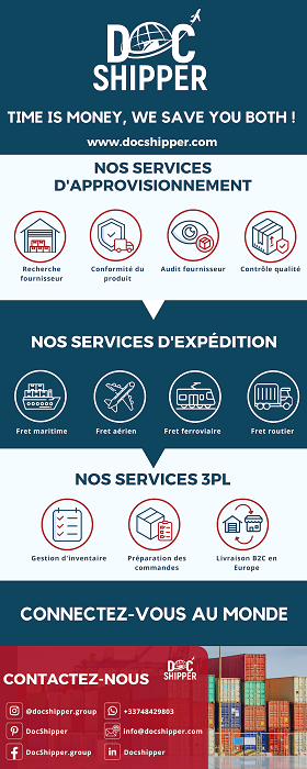 Les experts DocShipper assistent leurs clients sur l’ensemble des opérations : échantillon, production, contrôle qualité, mise aux normes et logistique internationale.