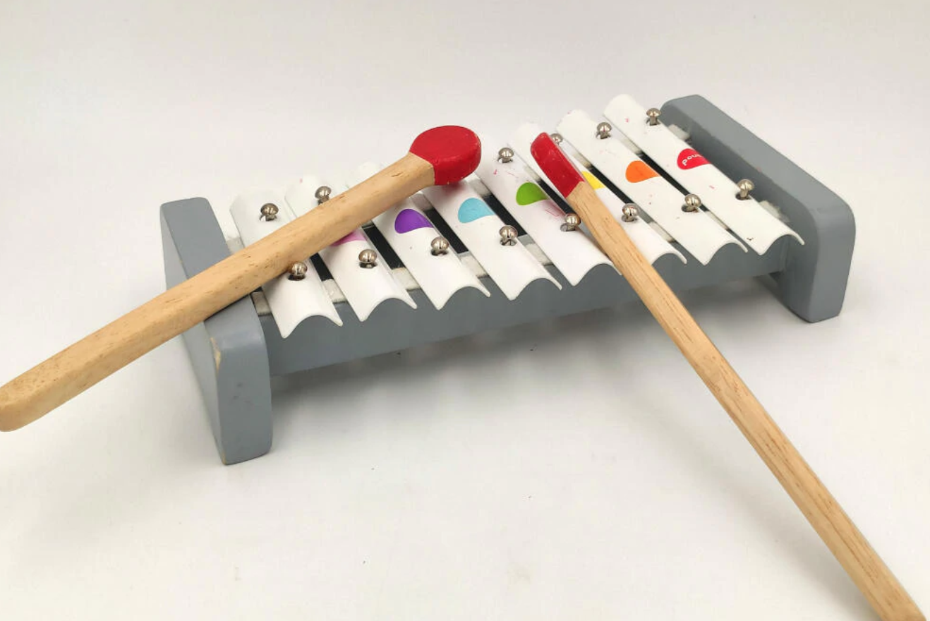 Ce xylophone en métal à huit notes est spécialement conçu pour les enfants. Il est signé par la marque Confetti, qui propose des instruments de musique colorés et joyeux. Il est livré avec ses deux baguettes.