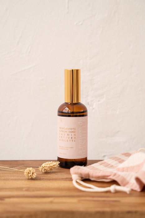 La brume LA MAISON DU BONHEUR a été créé dans le but de proposer une solution naturelle pour parfumer son intérieur et instaurer une atmosphère à la fois joyeuse et réconfortante.