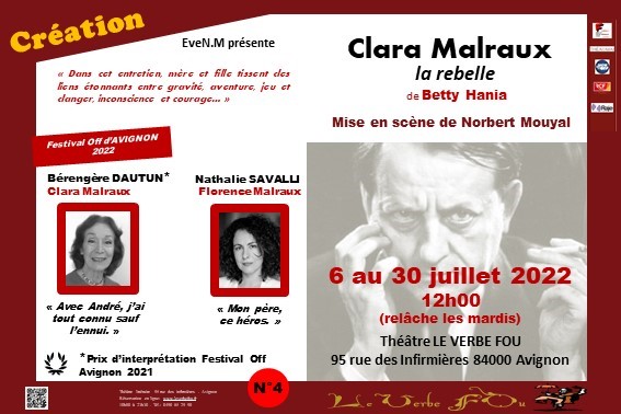 J’ai souhaité par la mise en scène de « Clara Malraux la rebelle », rendre autour de ce dialogue mère-fille, un hommage à cette grande figure que fut André Malraux. Ce grand moment de théâtre est interprété magistralement par Bérengère Dautun (prix d’interprétation Avignon off 2021 et ex- sociétaire de la comédie française) et Nathalie Savalli qui a obtenu un franc succès avec les lettres à Anne de F. Mitterrand.
