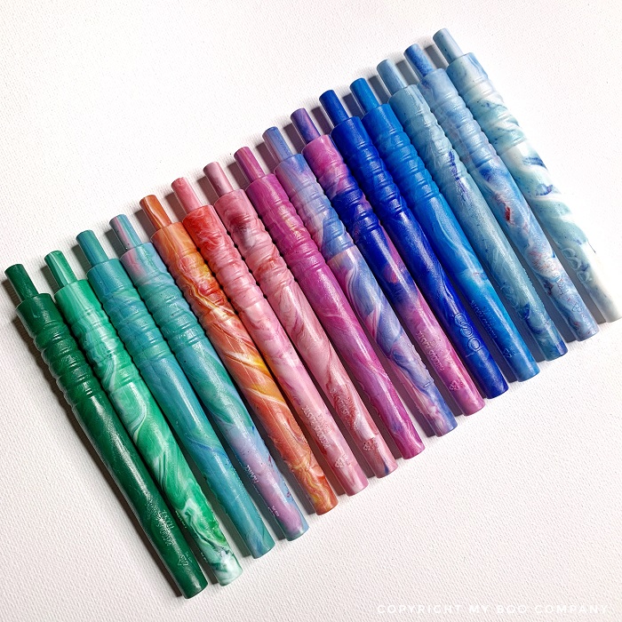 On aime le pep’s de ses couleurs variées à dominante bleue, verte, ou rouge/rose. La couleur de la tête est assortie au manche choisi.