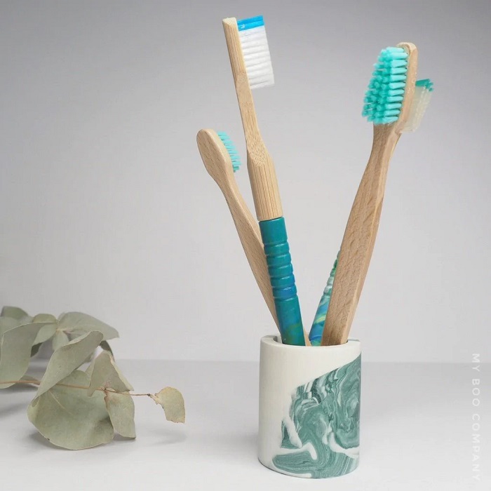 Le porte-brosse à dents en jesmonite vert