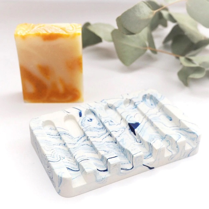 Le porte-savon en jesmonite marbré bleu