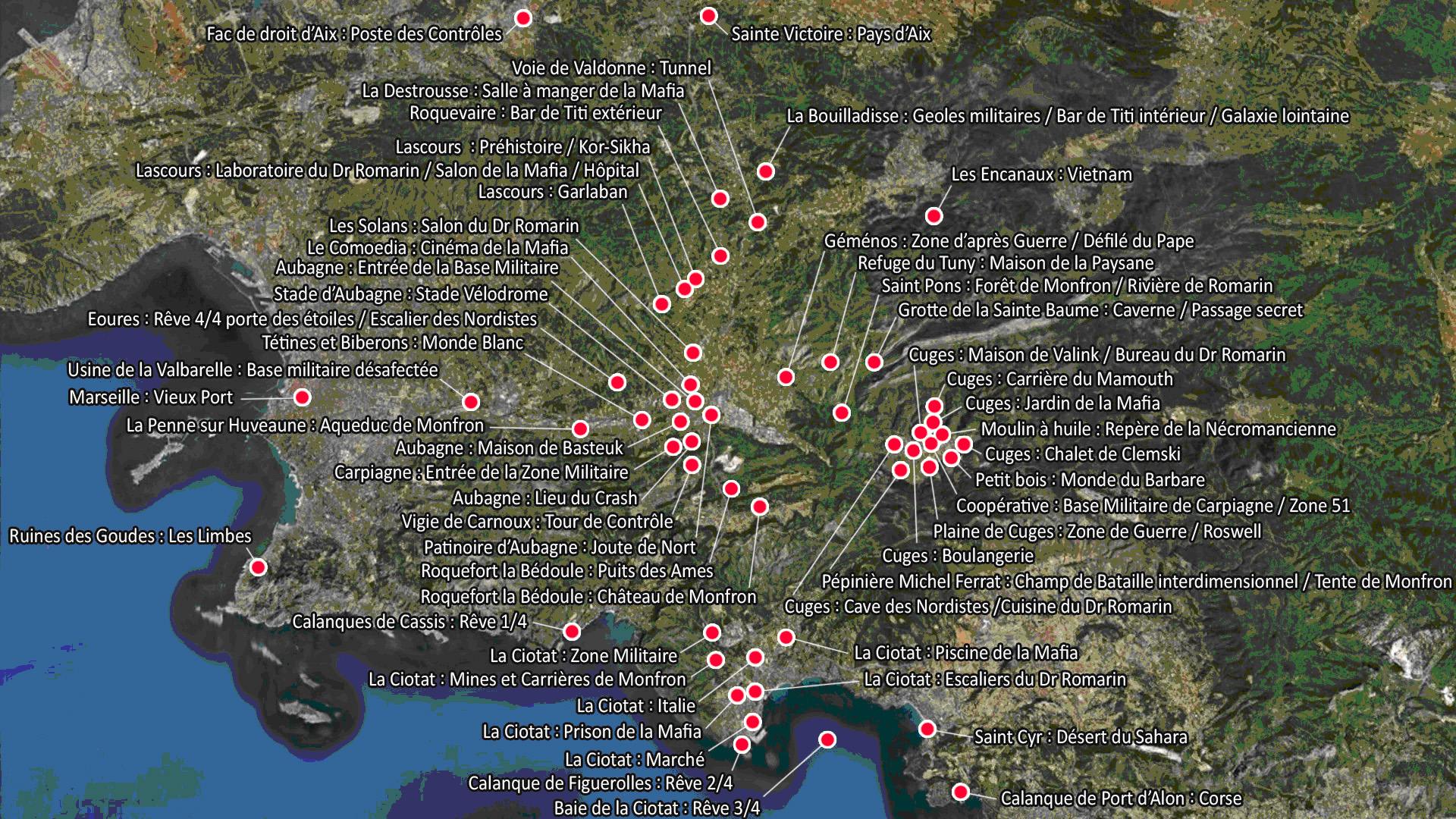 Durant un an et demi, les tournages se sont donc enchaînés dans un pays de Pagnol revisité ! Avec des décors insoupçonnés de la région Sud que les locaux peuvent s’amuser à reconnaître, comme la patinoire d’Aubagne, la coopérative de Cuges, les tunnels désaffectés de Valdonne, la fac d’Aix, ou encore sur la mer, au large de La Ciotat. Leur équipe a ainsi grimpée à plus de 100 bénévoles !