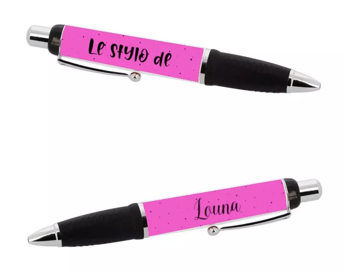 Ce stylo rose avec le message “Le stylo de” personnalisable avec le prénom de l’enfant l’accompagnera partout et fera sa fierté en classe.