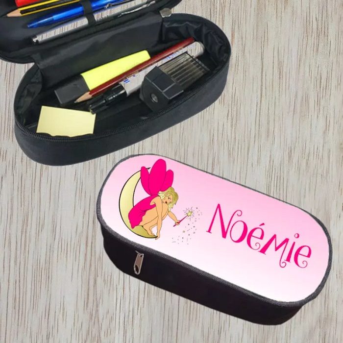 Cette trousse noire, avec fermeture éclair, est personnalisable avec le prénom de l’enfant. Idéale pour “avoir le swag” à l’école !