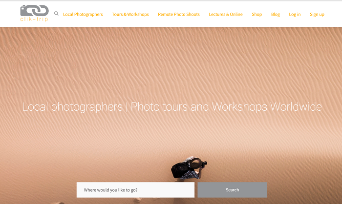 Click-Trip a pour objectif de fournir une ressource fiable pour réserver facilement des ateliers et des circuits de photographie. Fondée par Suzanne Porter, sociologue devenue photojournaliste, cette plateforme de voyage permet de s’aventurer hors des sentiers battus, dans des endroits que seuls les locaux connaissent.