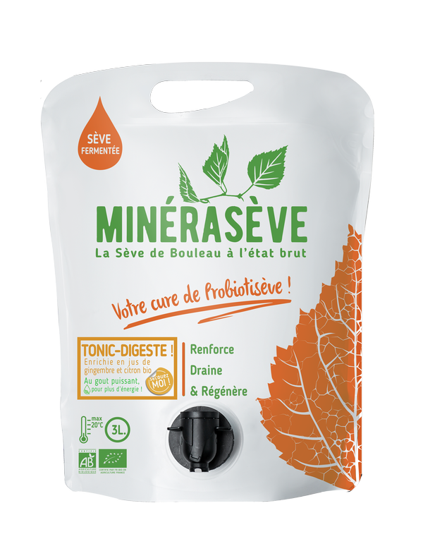 Pour lutter contre le blues automnal, Minérasève lance à la rentrée 2022 une nouveauté unique en France : la Probiotisève Tonic-Digeste, un produit tonifiant et purifiant qui allie les vertus de la sève de bouleau lactofermentée, du gingembre et du citron.