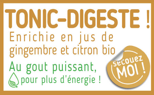 En plus de ses bienfaits pour le corps, la Probiotisève Tonic-Digeste réveille les papilles avec son goût frais et puissant qui marie le piquant du gingembre et l’acidité du citron.