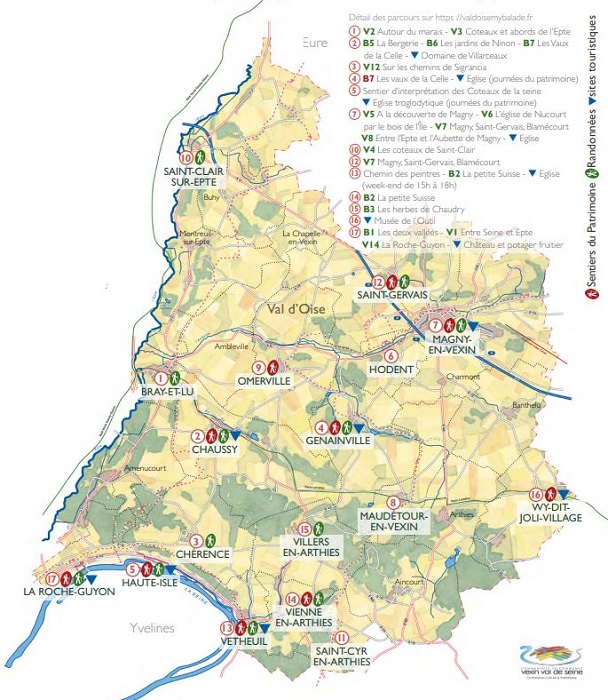 - En septembre : 3 parcours de visite des expositions et du patrimoine local sont proposés en collaboration avec le Parc Naturel régional du Vexin français, à pied, à vélo et même en canoë, accompagnés par des guides du territoire.