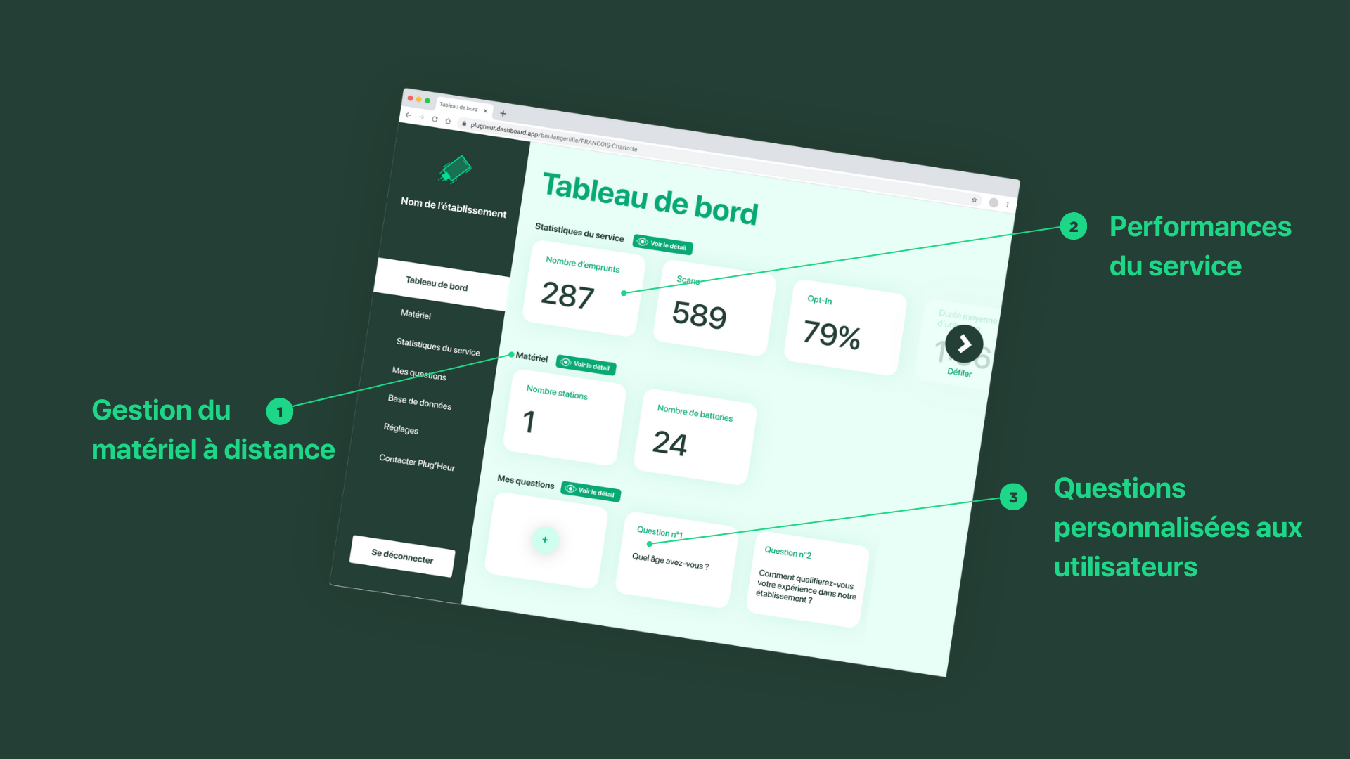 L’équipe Plug’Heur se charge de personnaliser les stations, les batteries et la Web App, mais aussi de la livraison de la solution et de sa maintenance.