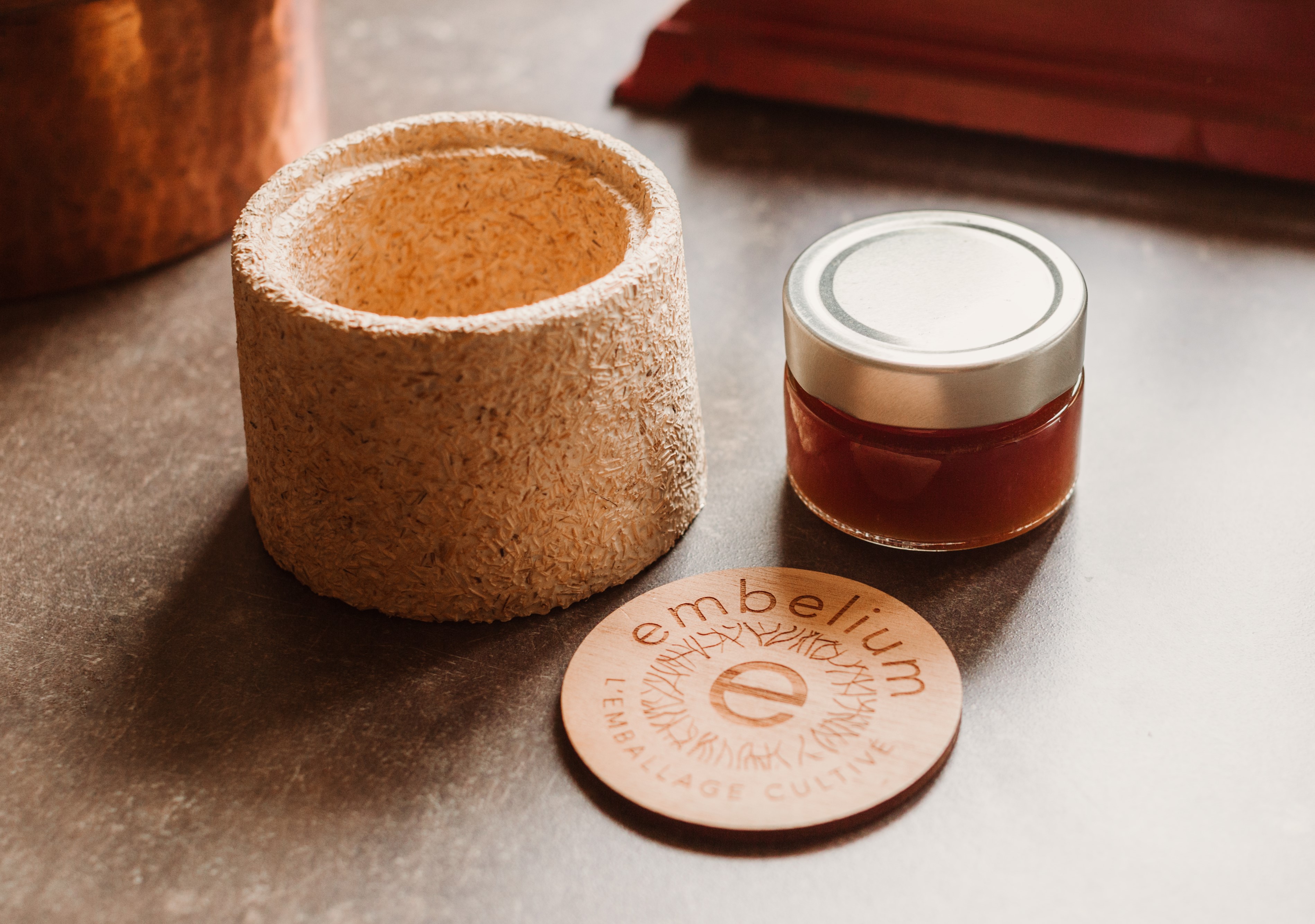 Créé par Rémi Laurant, spécialiste des matériaux et co-fondateur de Clic and Nectar, Embelium est un produit d’emballage 100 % végétal qui a pour vocation de remplacer les plastiques alvéolaires. Fabriqué dans le Sud Ouest, il pousse à partir d’un substrat composé de fibres végétales et de mycélium, qui agit comme un liant naturel.
