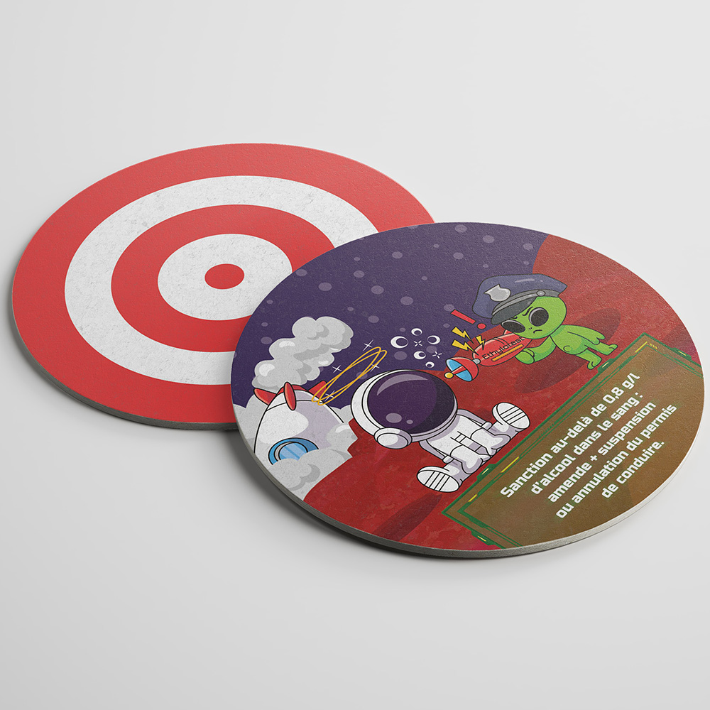 Ce qui rend Sam’Bock réellement unique, c’est l’association d’une mécanique de jeu amusante et de la prévention routière. Sur chaque sous-bock est écrit un message préventif en lien avec l’alcool ou les drogues et la conduite, avec des illustrations qui le rendent plus concret.