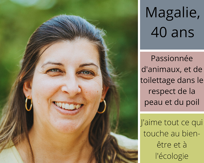 En tant que toiletteuse, Magalie Dufossé connait parfaitement l’univers de la cosmétique pour nos amis à quatre pattes. Elle est incollable sur les caractéristiques de leurs poils et sur leurs besoins !