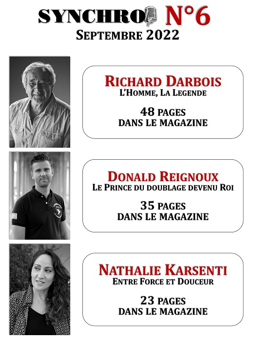 Au-delà de l’interview de “The Voice” Richard Darbois, SYNCHRO met un coup de projecteur sur deux acteurs ayant offert des interprétations inoubliables :