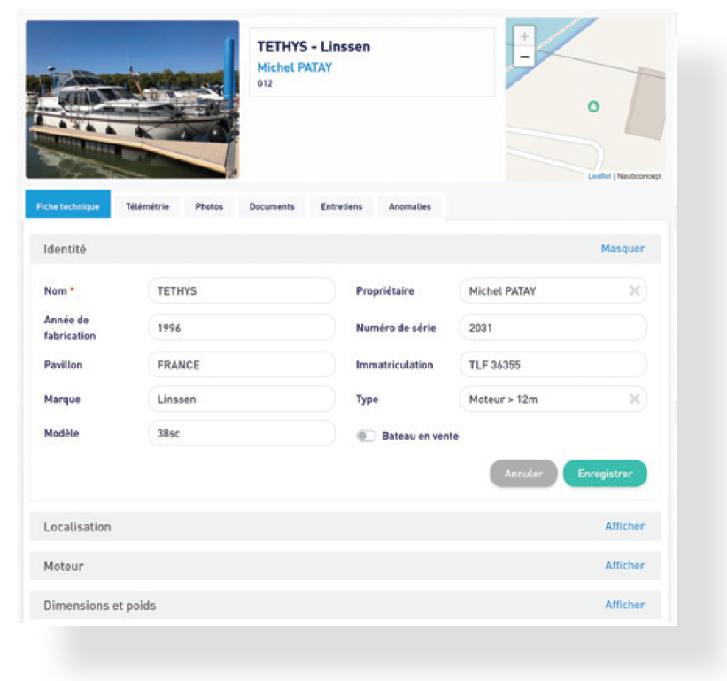 L’application offre également un volet monitoring, grâce aux boitiers électroniques installés par LiveYacht dans chacun des bateaux de ses clients. Les boitiers transmettent les données du bateau en temps réel : tension de la batterie, mouvement du bateau, présence d’eau dans la cale, etc. Lorsqu’un problème est détecté, le propriétaire et LiveYacht reçoivent une alerte, et l’équipe de maintenance intervient.