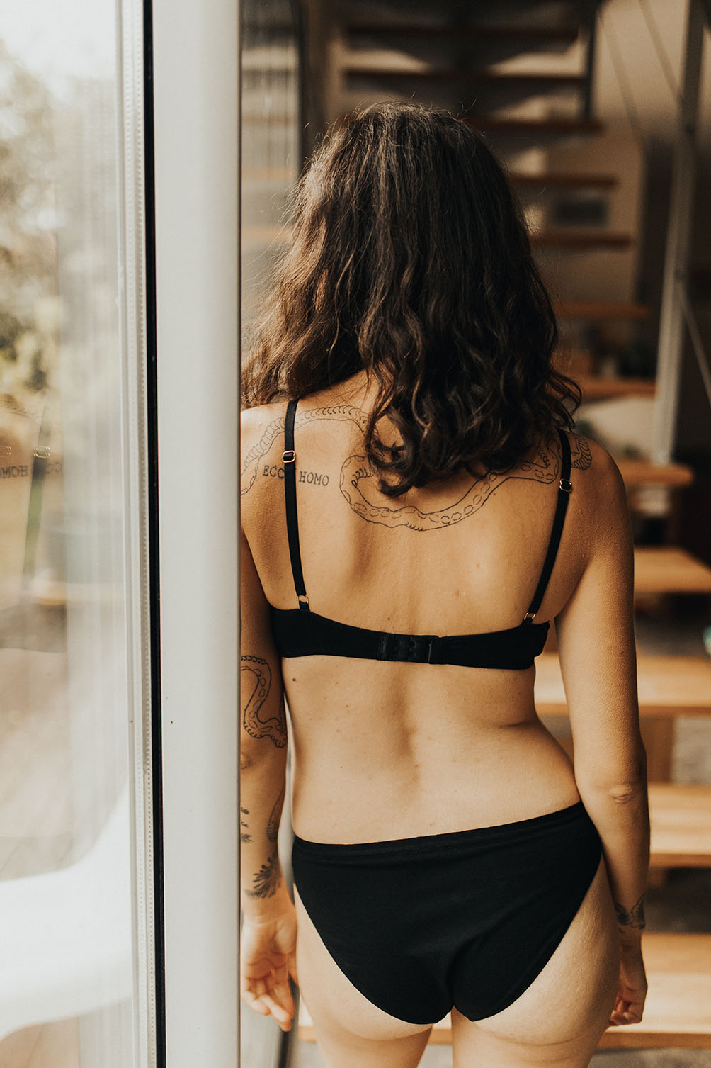 À 40 ans passés, Bénédicte a décidé de changer de vie en s’installant à Bordeaux, où elle a grandi, et en créant une marque de lingerie en accord avec ses valeurs. Le concept éjwé est né est de son expérience : Bénédicte a une peau hypersensible, et a toujours eu du mal à trouver des soutiens-gorge sans armature confortables.