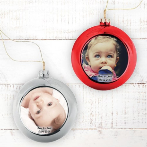 Cette boule de Noël pas comme les autres permet de décorer le sapin de façon originale. On peut la personnaliser avec un message, le prénom d’un enfant et sa photo. Elle est disponible en deux coloris : rouge ou argent.