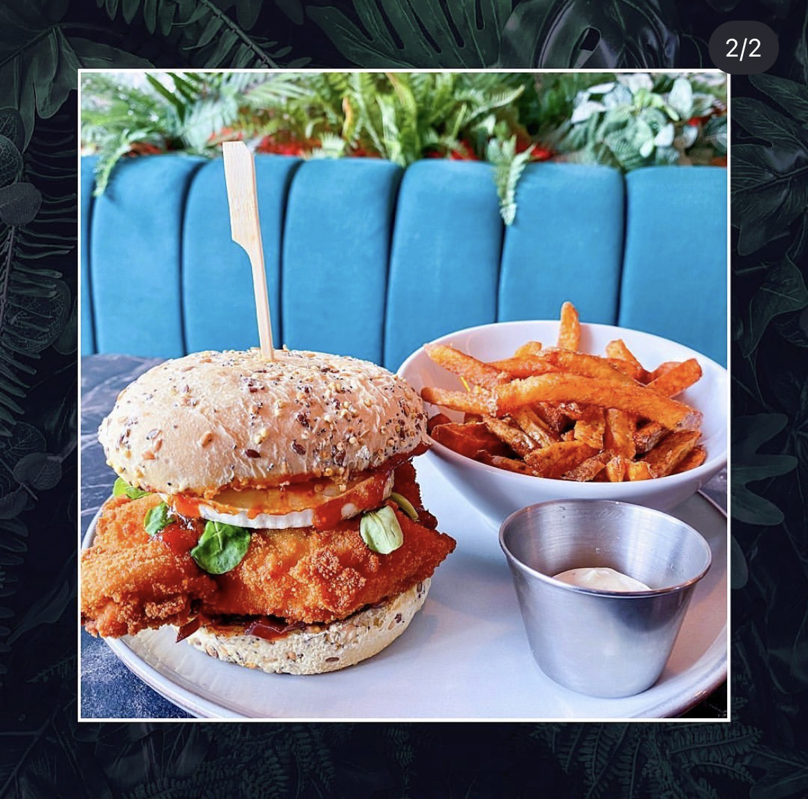 - Burger Cercle (avocat, tomates, oignons rouges, cheddar et poulet croustillant)