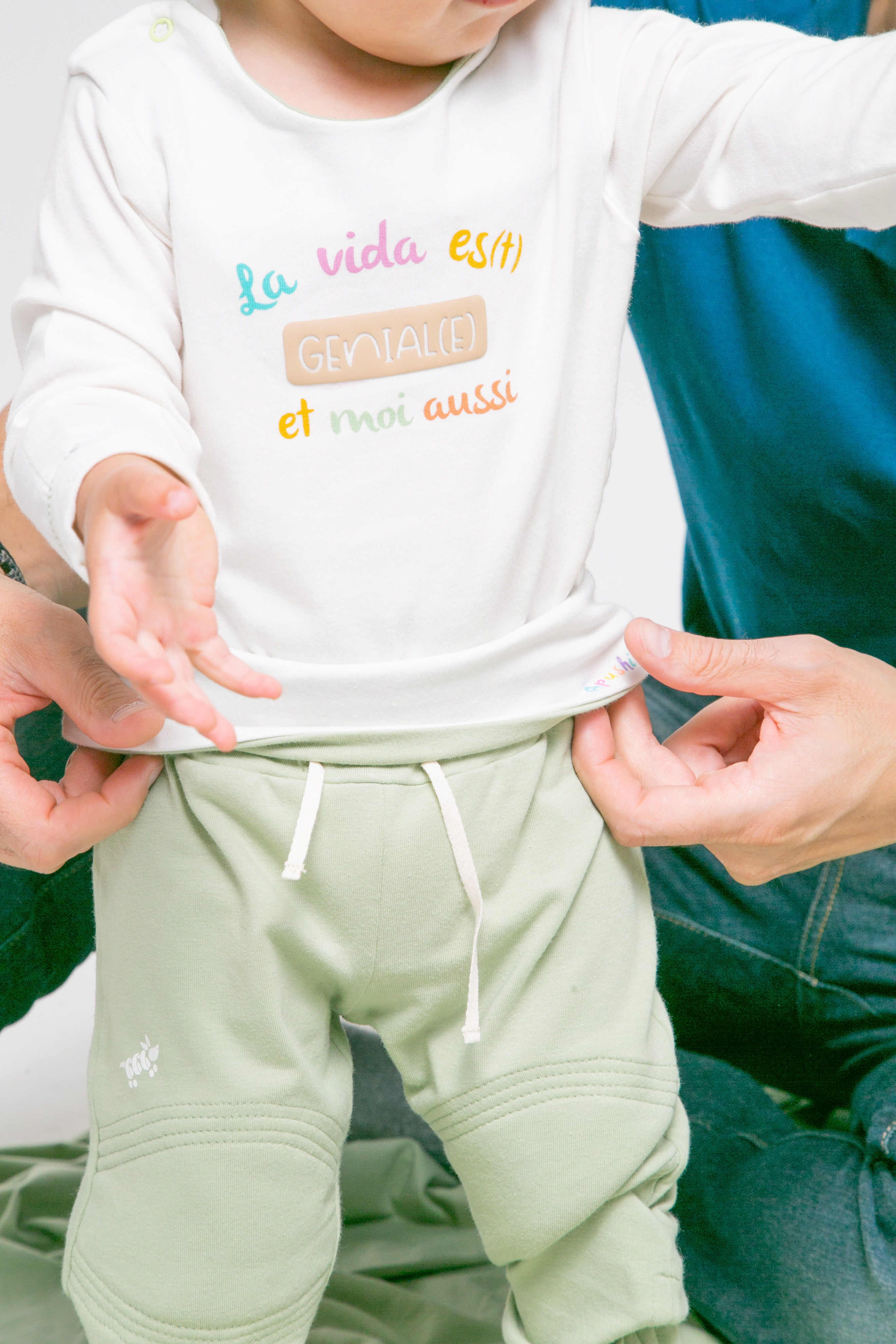 L’idée d’Apushi est née d’un constat simple : dans l’entourage de sa créatrice, Angélica Nossa, la phrase “Les vêtements de bébé ne durent pas du tout, quel gaspillage !” se faisait souvent entendre.
