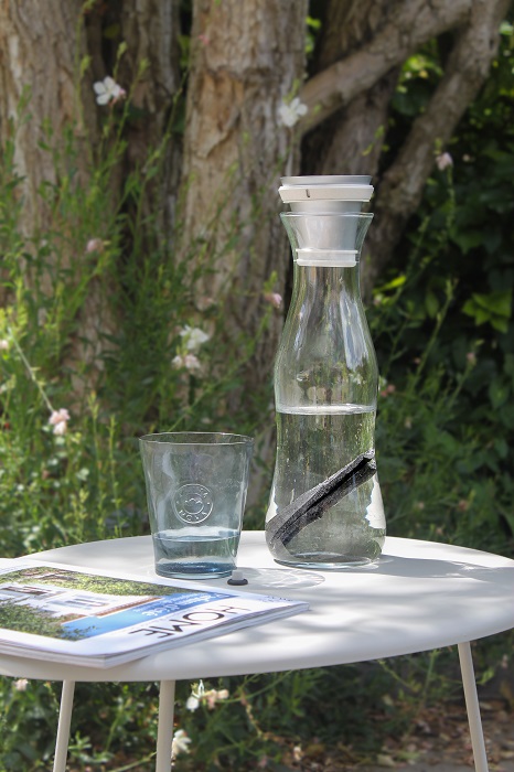 La carafe en verre est entièrement recyclable et fabriquée au Portugal par un spécialiste du verre scientifique.