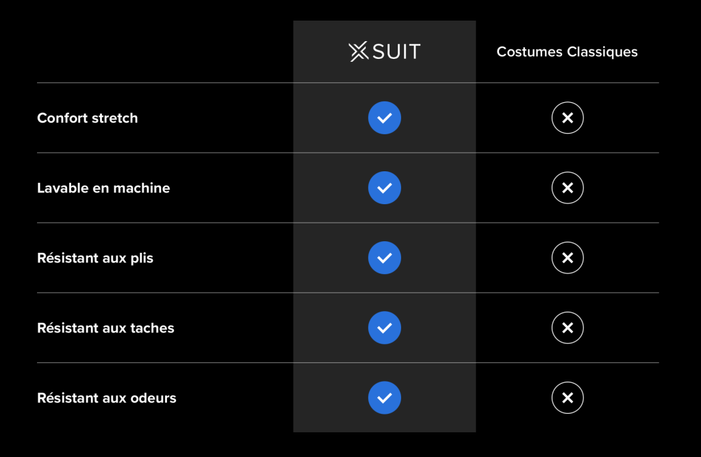 - Déperlants et antitaches pour un entretien minimum : fini les accidents (pluie, café renversé…), xSuit garantit d’être toujours impeccable.