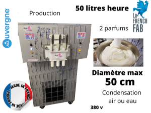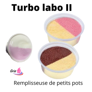 Nouvelle innovation de Gris, le seul concepteur-constructeur français de machines à glace italiennes professionnelles, la turbo labo II est ainsi une turbine remplisseuse 2 en 1, capable à la fois de produire 50 litres de glace par heure et de bourrer sans aucune manipulation humaine des buches glacées, vacherins et petits pots jusqu’à 500 ml.