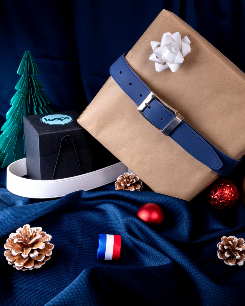 Loop Me se charge ensuite de faire de ses ceintures des cadeaux « prêts à offrir » : les ceintures sont maintenues enroulées par un bandeau bleu-blanc-rouge, et sont disposées dans un pochon d’emballage avec leur notice. Il est possible d’ajouter une carte portant le message de l’entreprise.