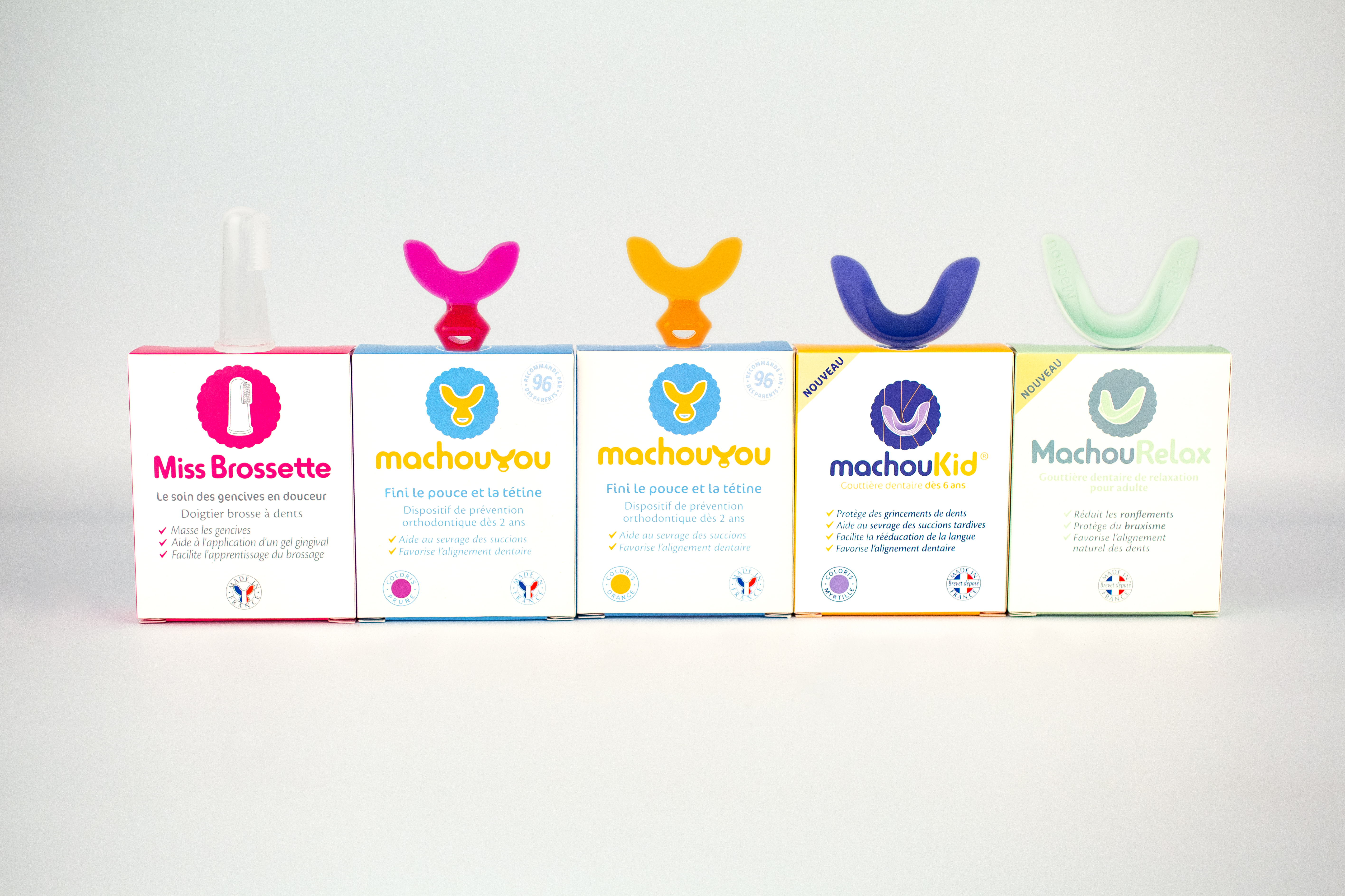 L’efficacité des produits de MACHOUYOU® est reconnue par les experts : aujourd’hui, plus de 3 000 professionnels de santé conseillent les gouttières de la gamme MACHOUYOU® en complément de leurs traitements. Elles peuvent être utilisées par toute la famille (3 modèles différents).