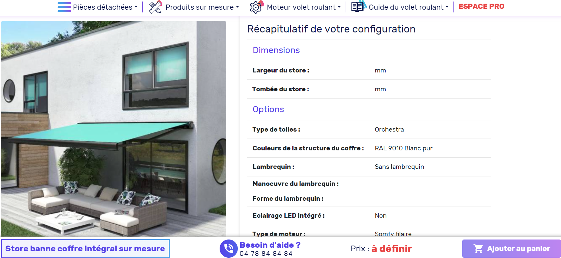 Store banne haut de gamme, coffre intégral, très design, avec large choix d’options pour une configuration sur-mesure.