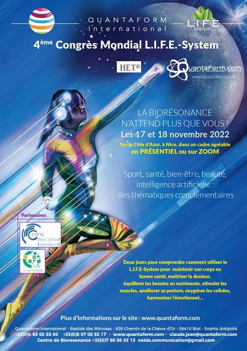 Dans ce contexte, la 4e édition du Congrès mondial du scanner de biorésonance L.I.F.E.-System, qui se déroulera à Nice et sur Zoom les 17 et 18 novembre, mettra un coup de projecteur sur le Sport.