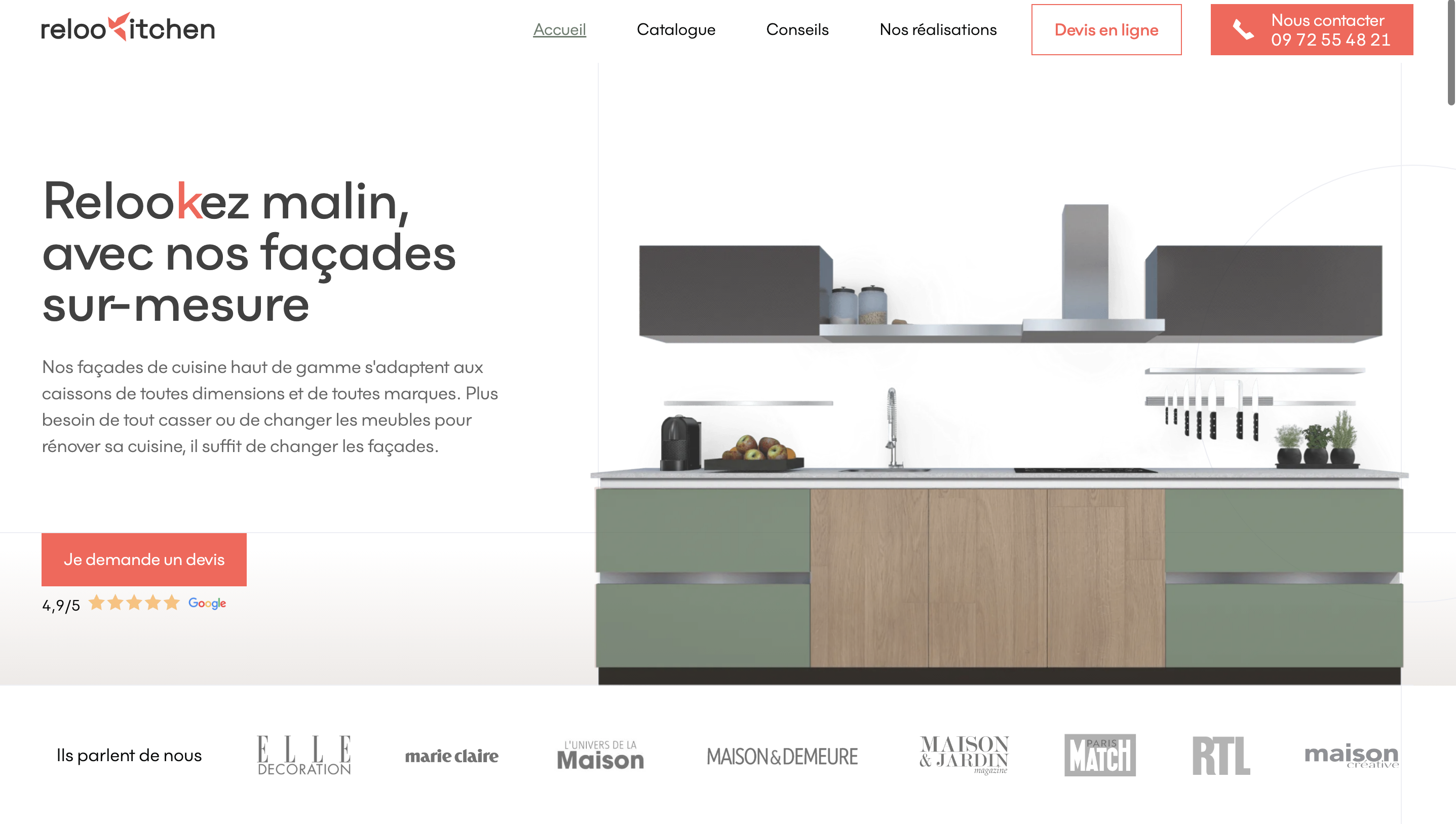 Relookitchen est aujourd’hui le seul acteur du marché à proposer des façades haut-de-gamme fabriquées 100% sur-mesure et qui donc s’adaptent aux caissons et aux meubles de toutes les marques comme Ikea, Leroy Merlin, Mobalpa, Darty…