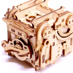 Boîte à énigme miniature, ce modèle s’inspire de sa grande sœur “Mecanigma”, icône du groupe NKD Puzzle. Dans un style Steampunk épuré, cette puzzle box à 5 mouvements est une bonne entrée en matière pour les fans d’énigmes. La boîte est également personnalisable : lors de la commande, il est possible de demander à ce qu’un texte de 20 caractères maximum soit gravé dessus pour la rendre unique et spéciale.