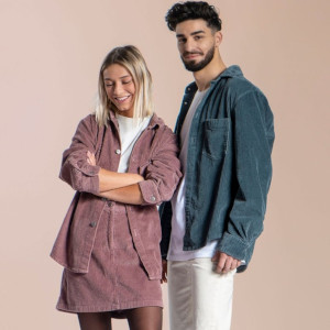 Certifiée Oeko-Tex et composée à 100 % de coton-velours côtelé, cette surchemise propose une coupe droite unisexe. Elle est disponible en deux coloris : Vieux Rose et Bleu Ciel.