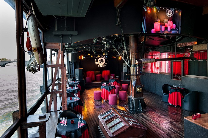 Il est aussi possible de privatiser le Pont pour les dîners de 30 personnes ou cocktails debout de 150 personnes. Sa surface en open space de 140 m², tout en teck, dispose d’un espace scénique, d’assises pour l’accueil du public, d’un bar entièrement équipé avec la licence IV… et d’une vue imprenable sur la Seine.