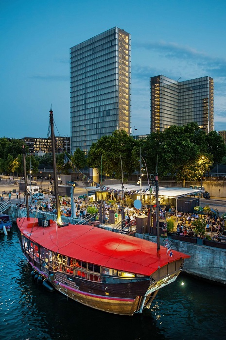 À la fin des années 90, la Jonque s’est amarrée quai de la Gare. Elle a alors donné naissance à un projet un peu fou : la création d’un lieu hors du temps, en plein cœur de la capitale, pour offrir une programmation culturelle tout en proposant une restauration raffinée.