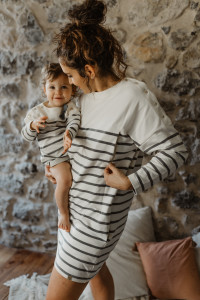 Ces considérations indépendantes l’une de l’autre se rejoignent cependant dans le bon développement de l’enfant et le bien-être de la parentalité. Deux défis que la marque de vêtement matchy matchy pour toute la famille, Copier Colait relève, en ajoutant à ses collections de vêtement famille, une version Milky Mama, pour allaiter discrètement.