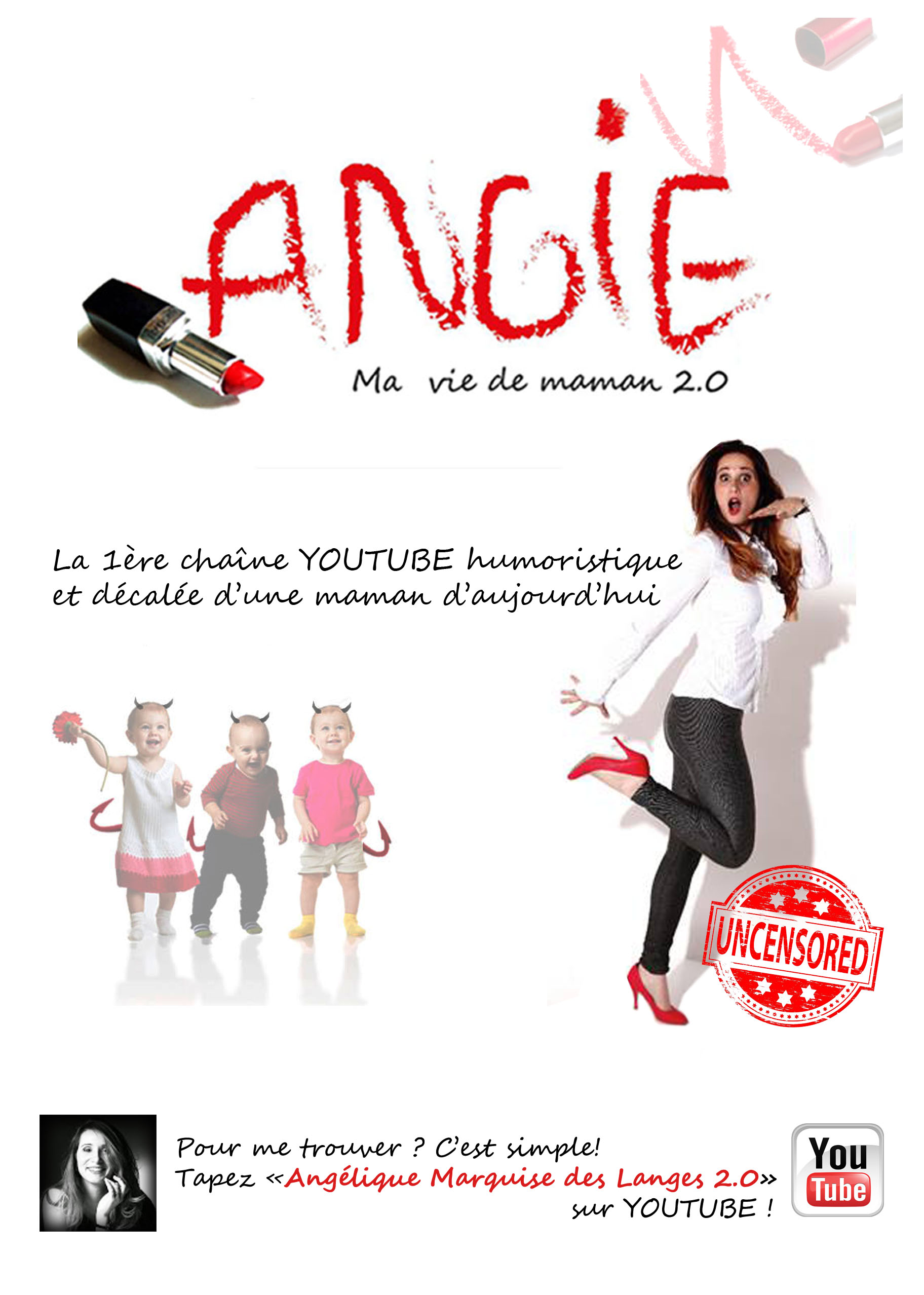 Pour mettre fin à des siècles d’omerta autour de la maternité (oui, rien que ça !), Angélique devient Angie, la Marquise des Langes et lance sa chaine YouTube. Avec déjà plus de 17 500 vues en moins d’1 mois, elle entend bien briser les tabous, balayer les clichés, dénoncer les stéréotypes, transmettre des messages sociétaux et surtout, tourner en dérision les aléas du quotidien de parent pour donner à rire !