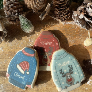 Comme marque-place ou déco de table, ces biscuits pull “moche” vont faire fureur cette année pour de petits cadeaux personnalisés ou un Secret Santa… Ils sont disponibles en 3 coloris (rouge, bleu ciel, bleu foncé) et sont à personnaliser avec le prénom de votre choix.