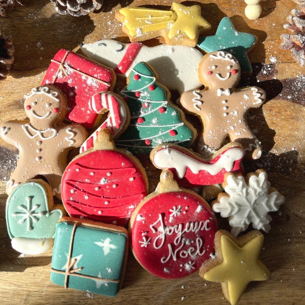 Des biscuits créatifs qui se transforment en ornements gourmands pour l’arbre de Noël, marque-places, décorations gourmandes à poser pour une jolie table personnalisée, petits cadeaux, jolis coffrets, cartes de vœux gourmandes à offrir ou à envoyer à vos proches…