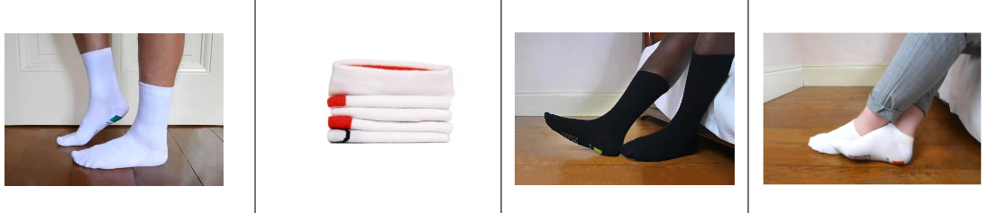 Blanches ou noires, les chaussettes de Léon se reconnaitront parmi les autres grâce au marquage sous la voute plantaire, ainsi qu’au liseré de couleur ornant leur intérieur. Savamment pliées ou en vrac, elles sont toujours reconnaissables.