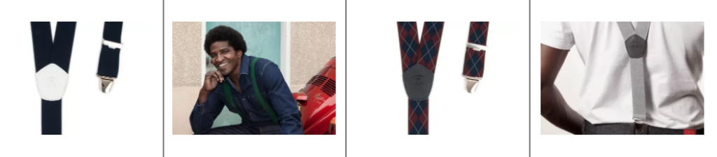 Au-delà des bretelles, une gamme complète d’accessoires est conçue et produite en France : ceintures, nœuds papillon et chaussettes.