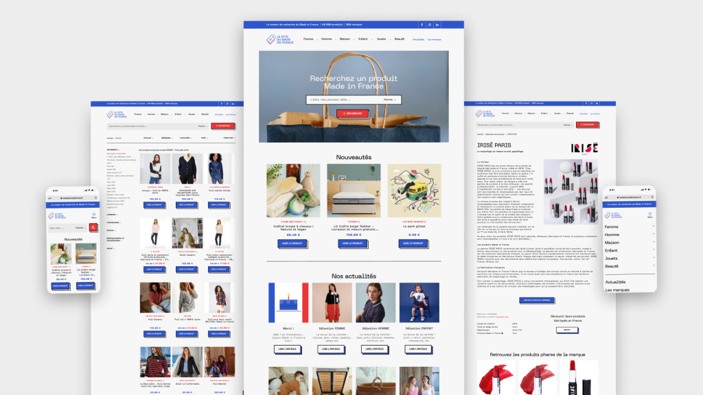 Le site propose également un contenu riche dédié au Made in France, avec des pages pédagogiques, des articles et des sélections de produits.