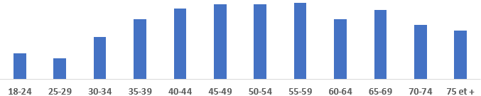 - Deux tiers ont plus de 45 ans et 34% sont des seniors.